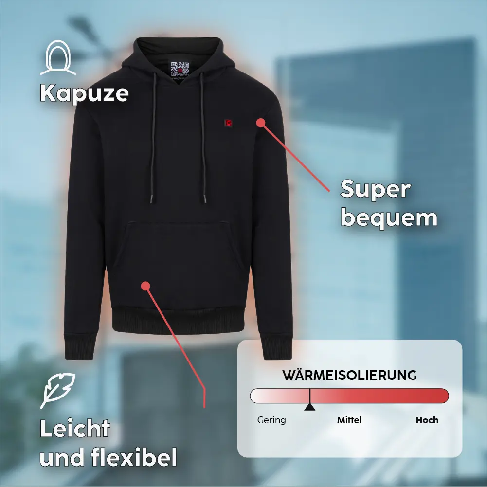 Comfortable, lightweight, ready to wear: the ESSENTIAL heated hoodie is your new favorite layer when the cold weather sets in. With its flexible fabric and relaxed fit, it offers gentle warmth without weighing you down.
